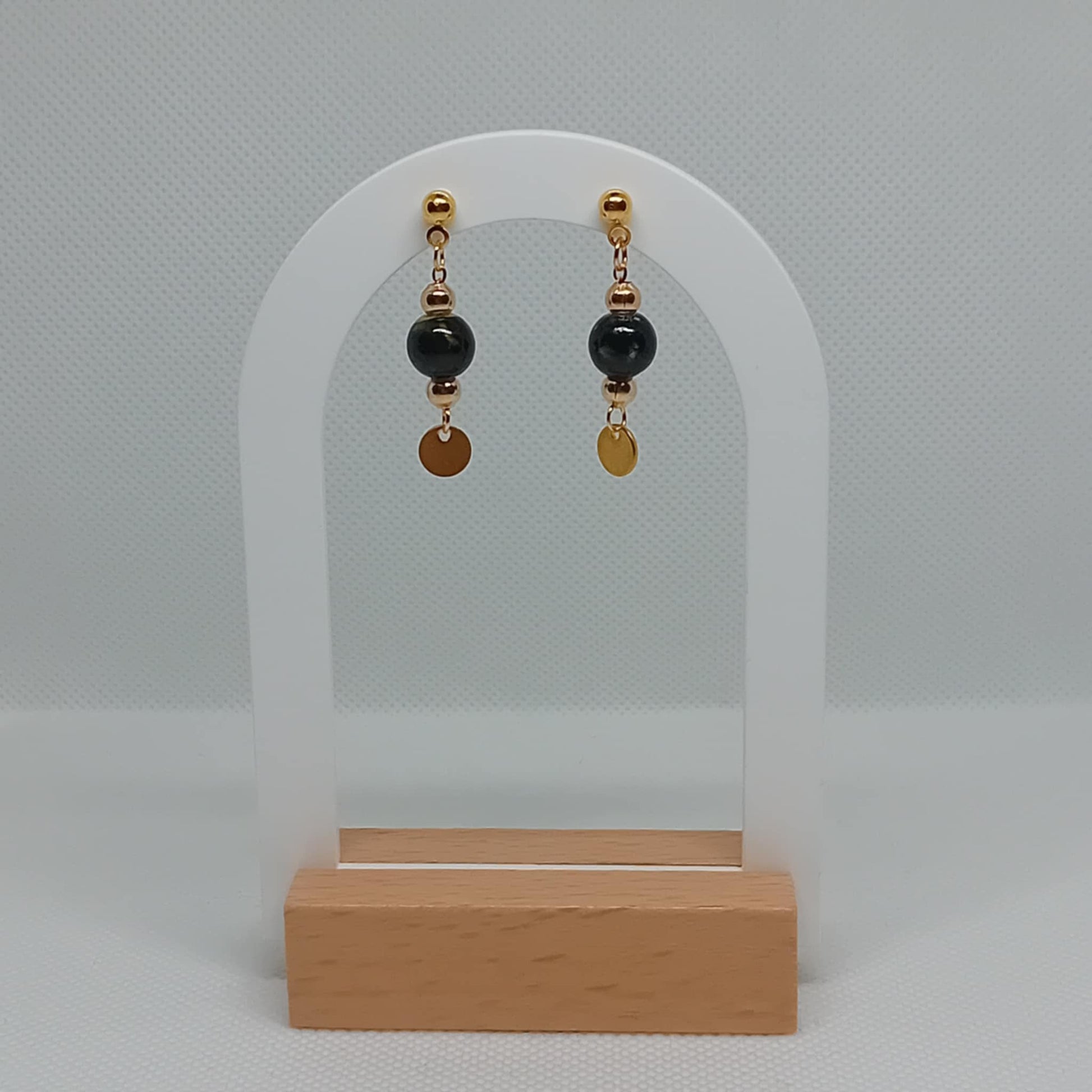 Our Black Marble Bead Dangled Earrings is perfect blend of comfort style made from high-quality 6mm beads finish off with 4mm gold beads.