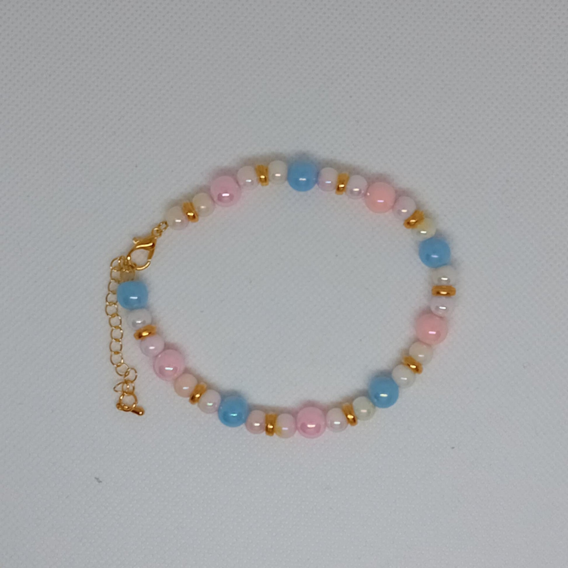 The pastel pearl bracelet is made out of 6mm pearl beads, 4mm pearl bead and adding a touch of gold beads.